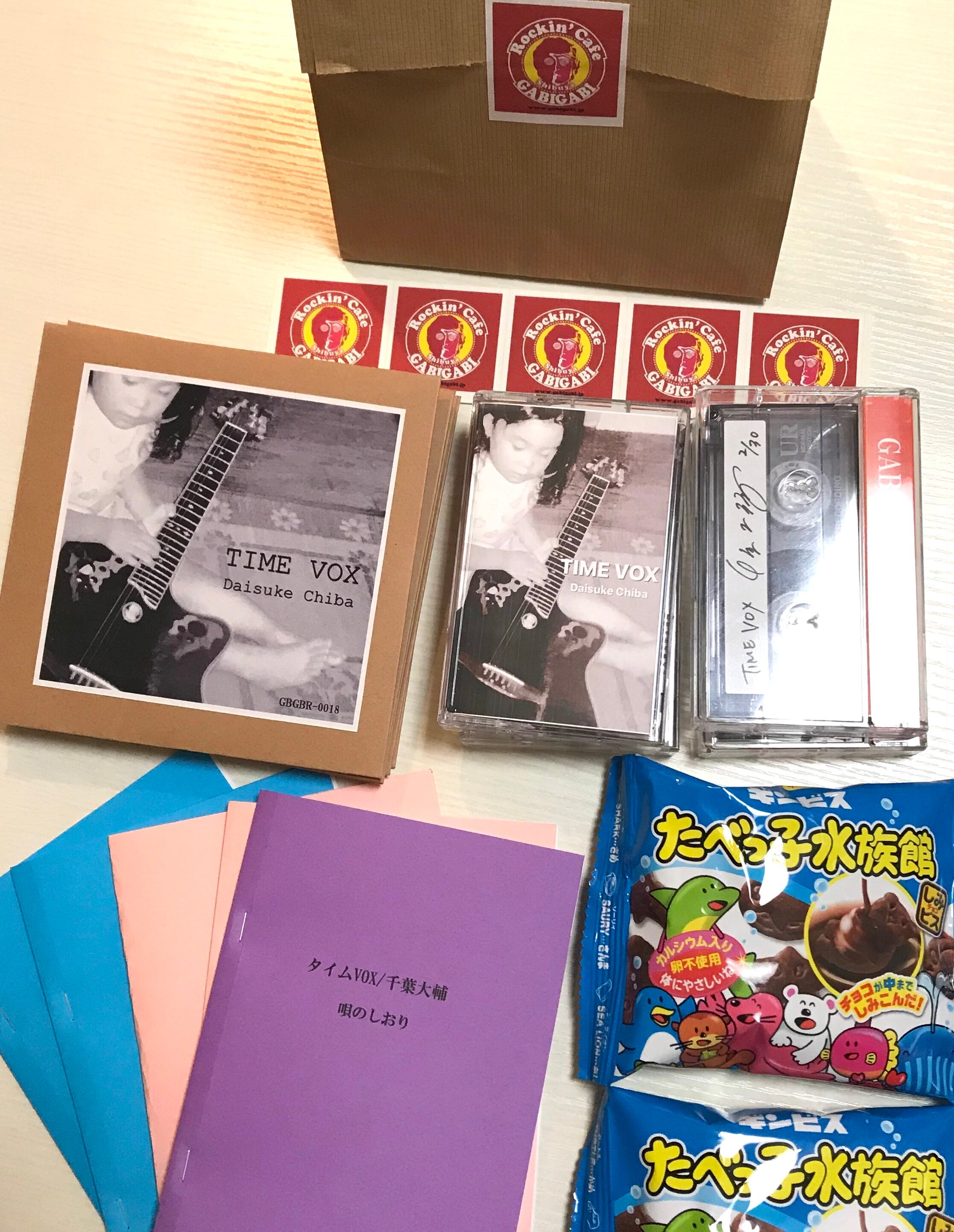 『タイムVOX』カセットテープ、CD、手作りブックレット『唄のしおり』、食べっこ水族館封入。限定30セット